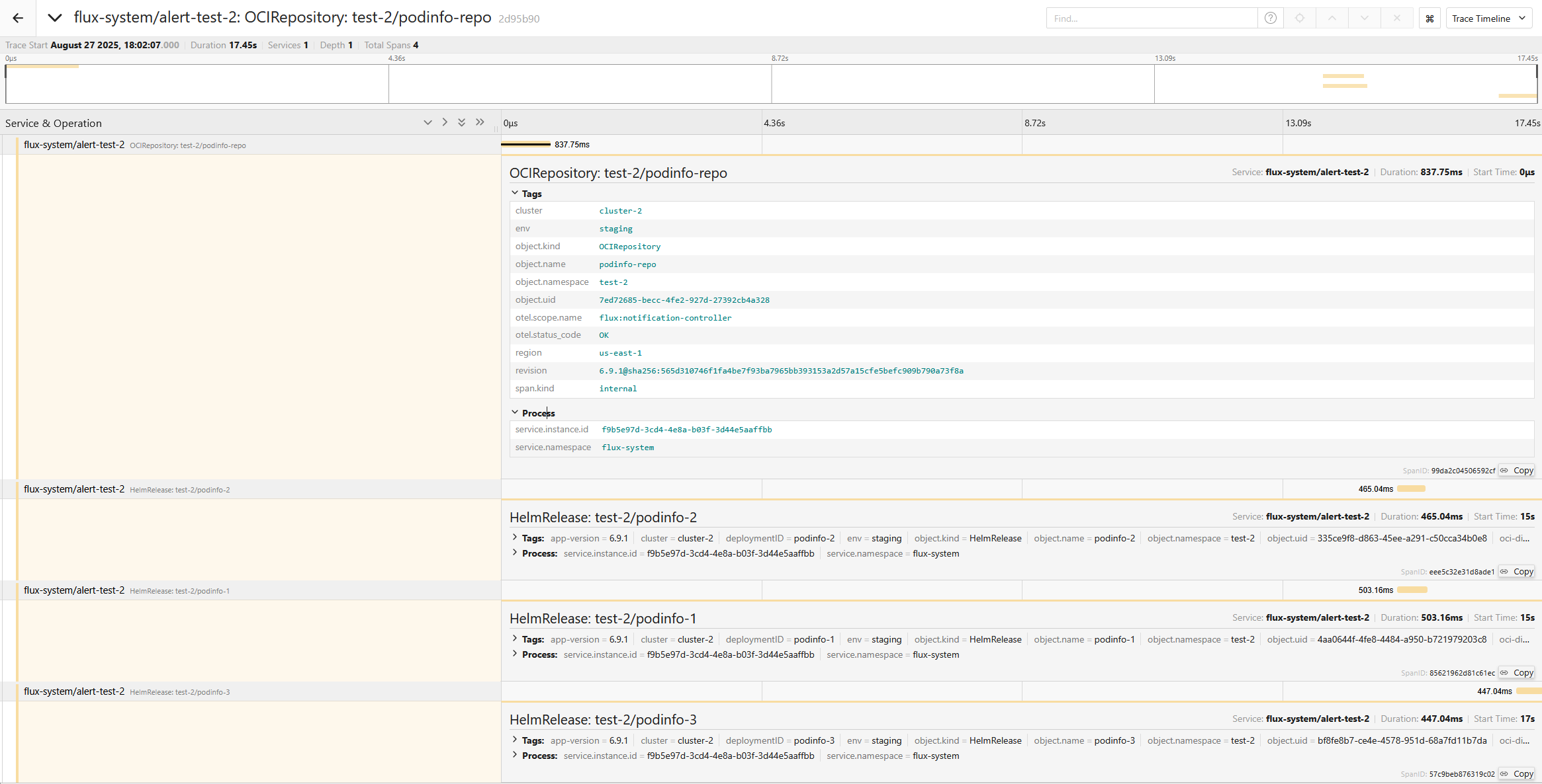 Starting with Flux v2.7, users can enable OpenTelemetry tracing for Flux reconciliations